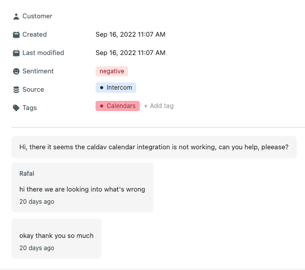 Additionally, we've added support for the conversations' replies. Thanks to that, you are able to analyze whole Intercom conversations, including replies. Previously, we were pulling only the first message from the conversation.