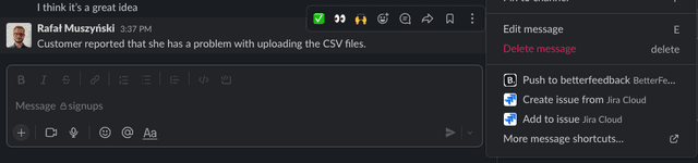 We've integrated Slack as a data source. You are now able to pull the existing messages from private or public channels by either fetching them one time from the specific channels or pushing only the messages you want using the Slack Shortcut menu.